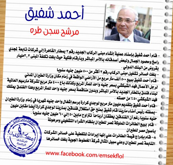 وده تقرير يضم عدد كبير من الفضائح والفساد الذى يدين شفيق من عمله كوزير للطيران فى عهد المخلوع